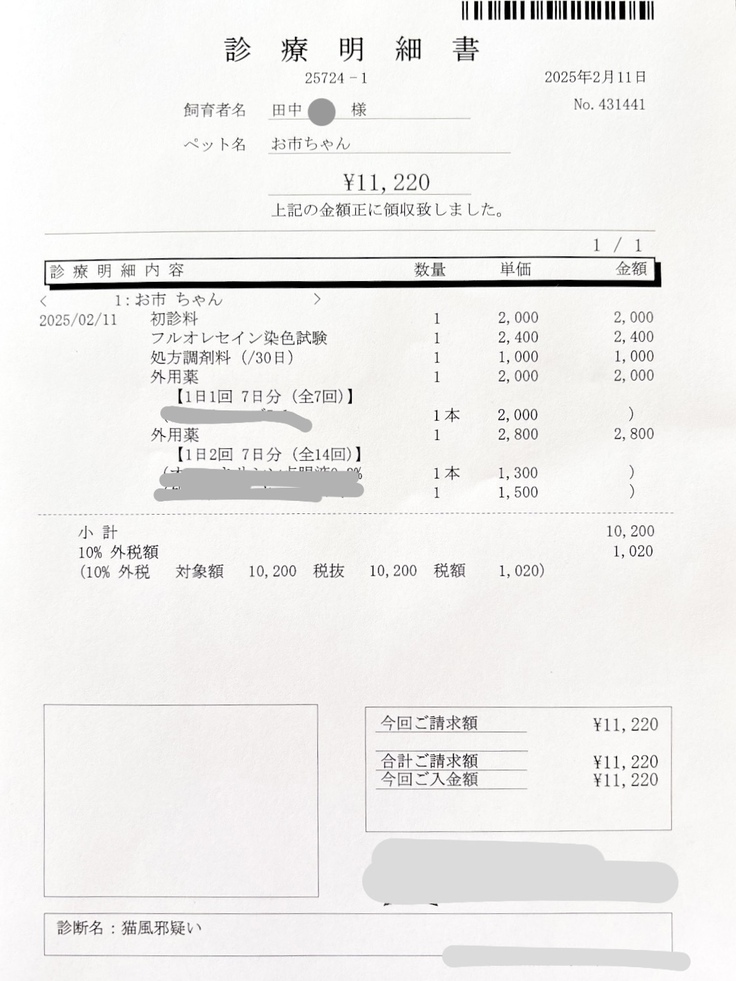 診察してくださった獣医師によると
