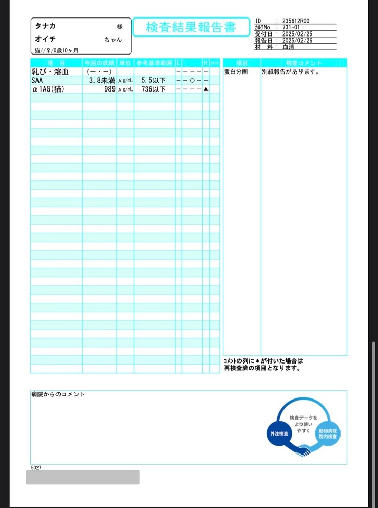 α1AGの数値も前回値(1393μg/mL)に比べ、基準値に近づいており順調!