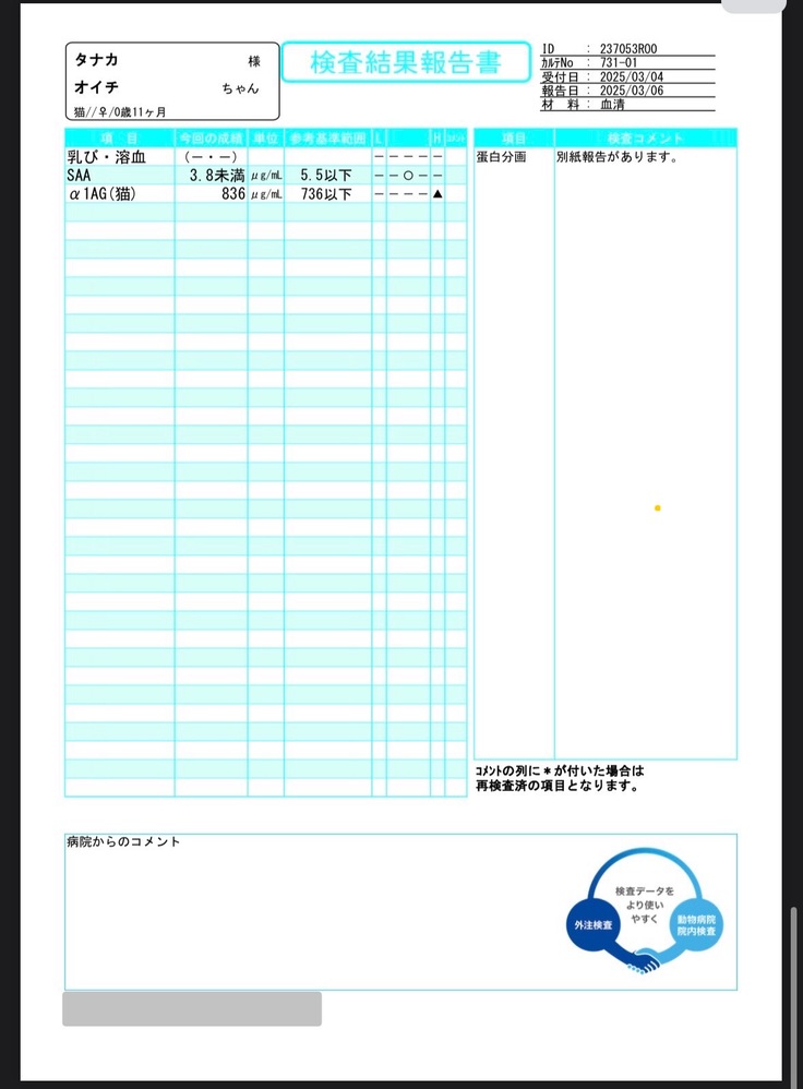FIPとは別で、お市の状態で最近気になることがありました。