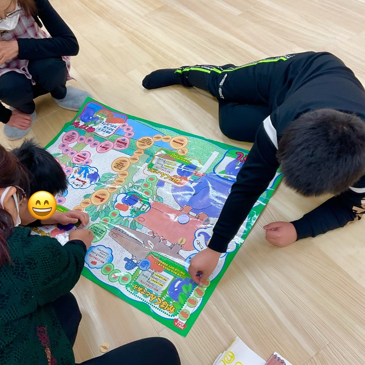 すごろくはルールの理解が曖昧な部分もありつつ、職員のサポートで最後まで取り組むことができました。このような昔の遊びの経験も大切だと感じました。。今後も取り入れていき子どもたちの発達支援に役立てたいと考えています。