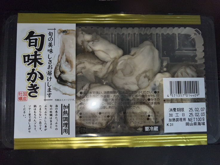 アルバイト先のスーパーマーケットで牡蠣が特売でいつもの半額の1パック200円で販売されており、思わず買ってしまいました!!🦪
