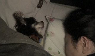 いつも部屋で寝てくれるレオン🐶ですが、1週間入院なので、昨日は一緒に寝ました。