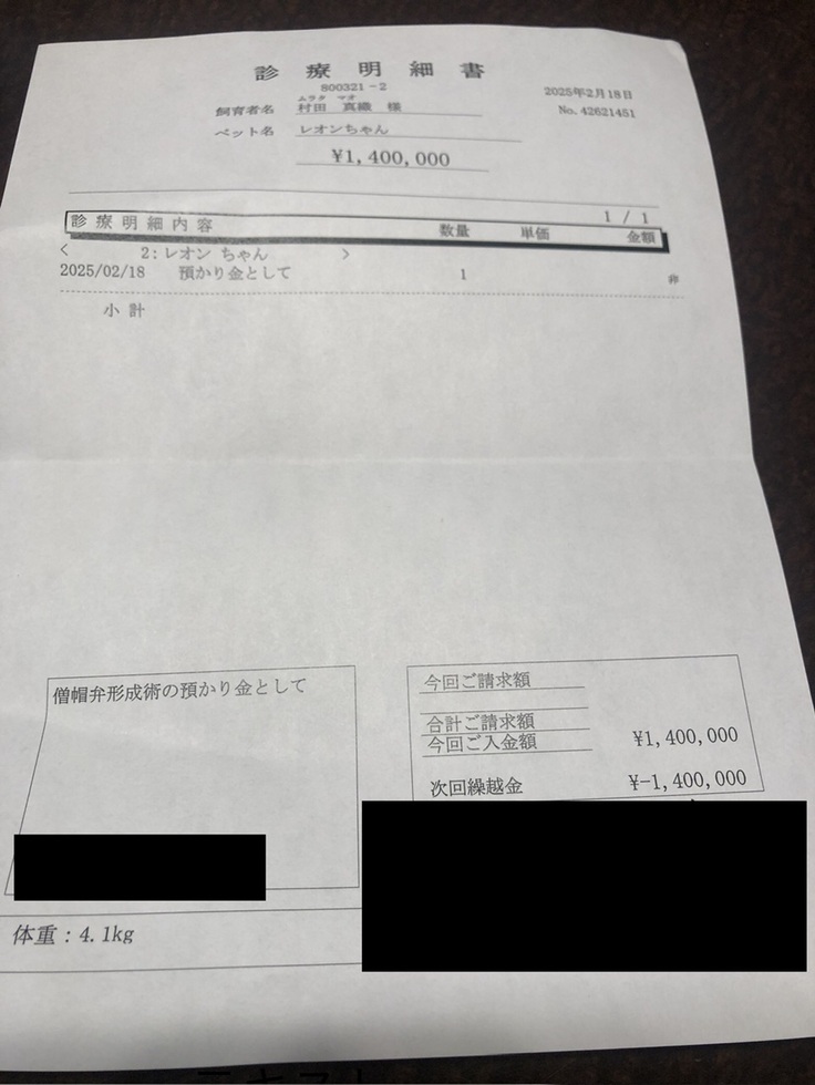 手術や点滴を入れる関係で、体の左半分と首、腕の3箇所の毛を剃り、食欲がなく自力でご飯を食べられない場合は食道にチューブも入れるそうです。