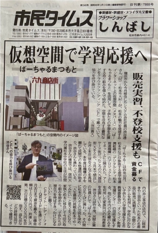 ⚫️「ばーちゃるまつもと」の賛助会員(令和7年度限定)にご招待致します。