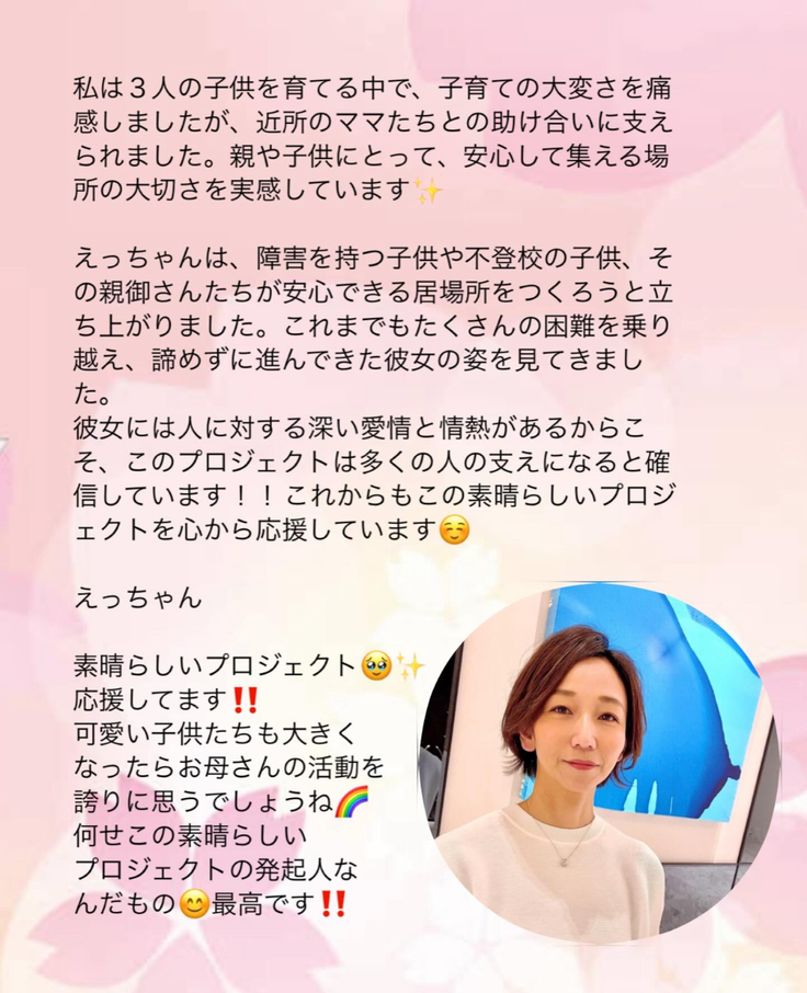 また、応援メッセージの中には高校や大学卒業20年以上ぶりにこのクラファンで出逢う方も何人かいて、驚きと感激でいっぱいの気持ちになりました🥹その他、はじめましての方からのご支援も増え、日に日に皆様からのお気持ちを絶対に無駄にしたくない!という思いが強くなってまいりました。