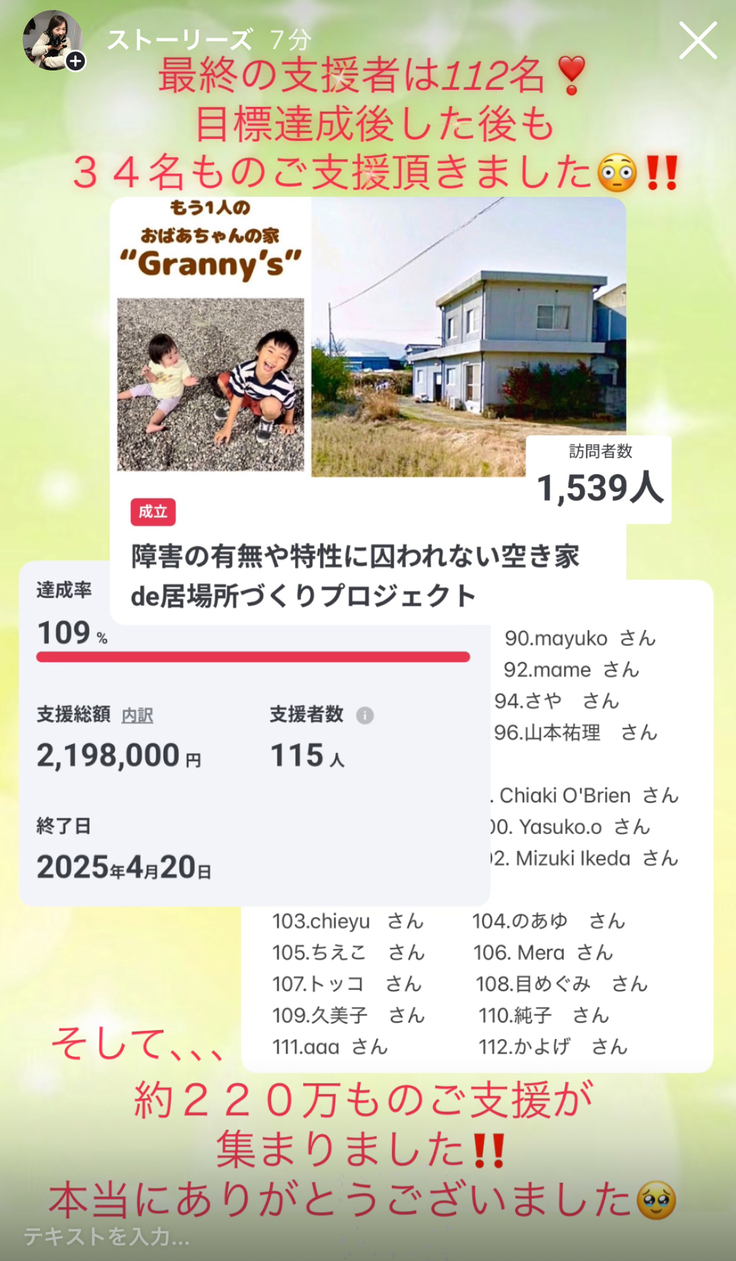 担当者の方からも、「200万ものクラウドファンディングを成功させたことは、絶対計画書に盛り込んだ方がいいですよ!それほど、皆さんから支持されているということですから!」と、大変嬉しい言葉をかけて頂きました🥹