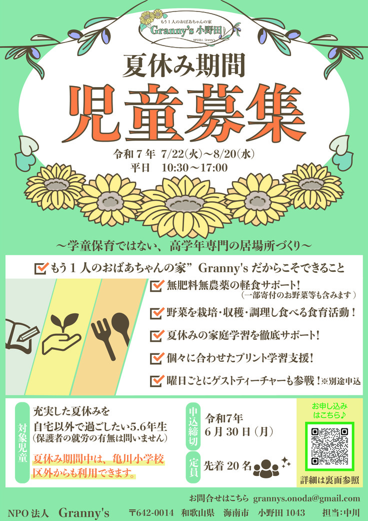 昨年度まで同校で教頭先生をされていたそうで、ものすごく子どもたち1人1人のことを大切にされているとても素敵な校長先生で、このプロジェクトにも理解を深めてくださり、お預かりする子どもたちの保護者に向けて、Granny’sの夏休み見守り&学習&軽食サポートのチラシを、なんと一斉メールで送っていただけることとなりました😳‼️