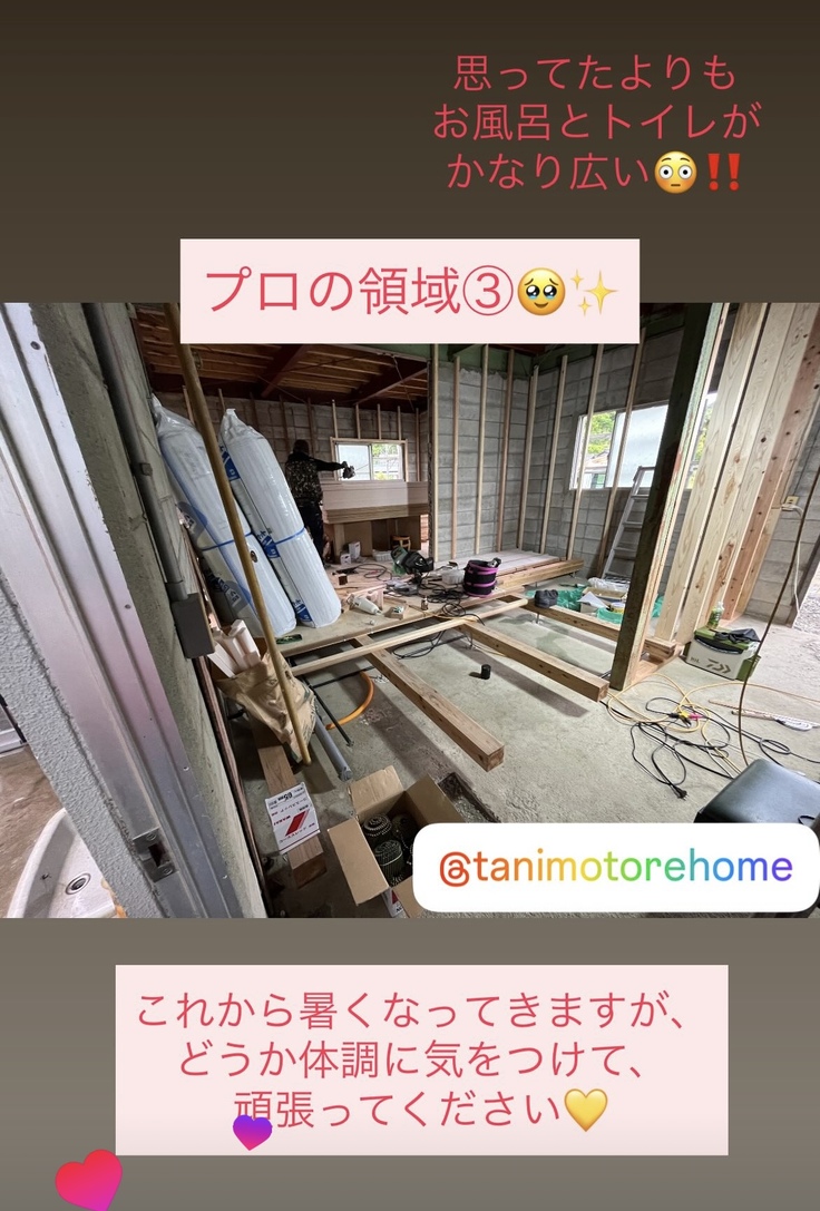 なお、私のInstagramでは、ほぼ連日リフォームの進捗状況をストーリーで投稿させていただいておりますので、よかったらフォロー、ご覧いただけたら幸いです😊✨