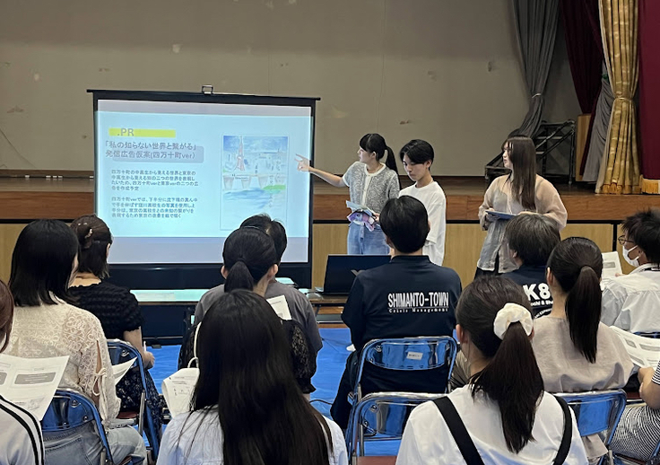 しかし、現地の人々からは、医療制度を含めた子育て環境への悩みや労働者年齢を懸念する声が聞こえてきました。そして町の活性化のために、「四万十町のことを知ってほしい」、「大学生に来てもらい、町のことを発信してほしい」、「遊び感覚で気軽に多くの人に訪れてもらいたい」という思いを抱いていることを知りました。 このような町の方の思いをもとに、町の高校生と外部の高校生をオンラインでつなぎ、それぞれの町を紹介しあうツアーや、大学生と四万十町をつなぐため、サークルの活動拠点にする企画などを四万十町役場の方々に提案し、プログラムを終えました。