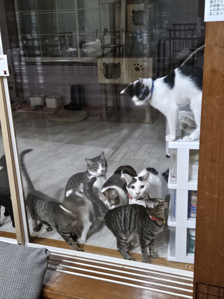 4:00には🐱たちはお部屋の入口へ集まり始めます。