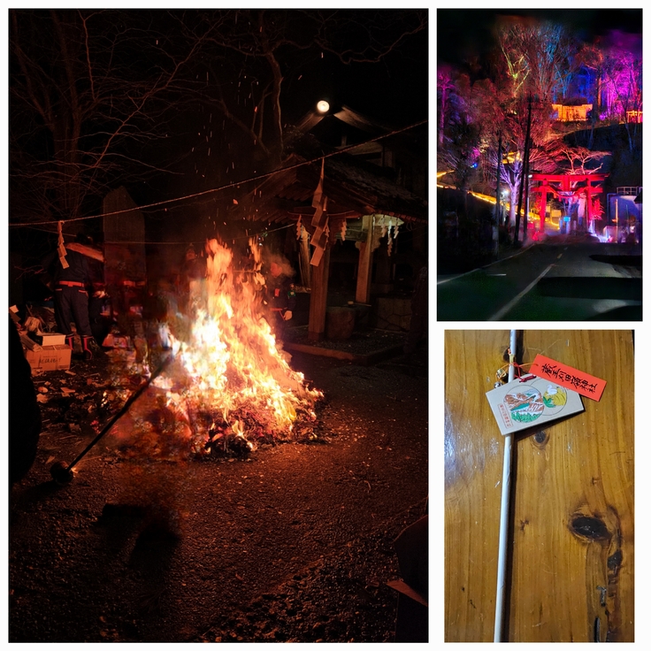その後近くの神社へ…どんとさい…お正月の飾りを炊きに息子と行きました。