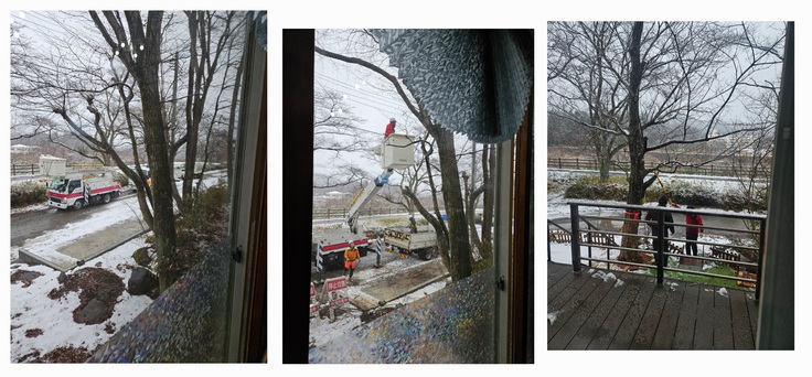 12月に来なければ4月と聞いていたので...電線にかかる木の伐採を電力会社へお願いしておりました。急な連絡でしたが助かりました。雪の中の作業に…ご苦労様です…