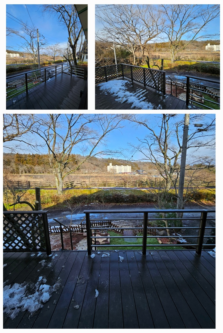取り除かれました。この木は左右に伸びる電線に覆いかぶさっていたので かわいそうだけれど電線が切れてしまったら…他の木もすっかり…土手の桜の木が良く見えるようになり、春にはウッドデッキや店内からお花見が出来るようになります。