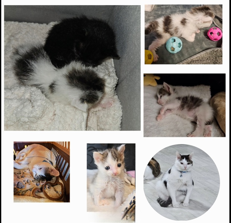 5🐱で最スタート…2時間おきのミルクと…歩きはじめたころにゴマちゃんの前足に違和感が、右足の関節が真っ直ぐ延びてない、どころかクニャりと直ぐに病院へレントゲンの結果、関節変形症先天性ですね…更に前足だけではなく首、肩、股関節全てにみられました…どの関節もつながっていない…