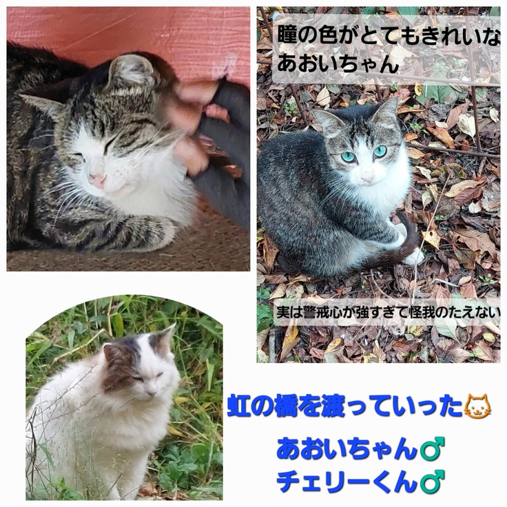チェリーくんは里にゃんハウスに現れた頃首に大きな怪我をしておりました…ただ警戒心もあり手当てするに苦労したと…傷が治った頃にはBOSS🐱狙いの喧嘩が…去年の10月頃から姿を見かけなくなったと…その後チェリーも、虹の橋を渡ってしまったと…双子のゴマちゃんはチェリーにそっくりです❗