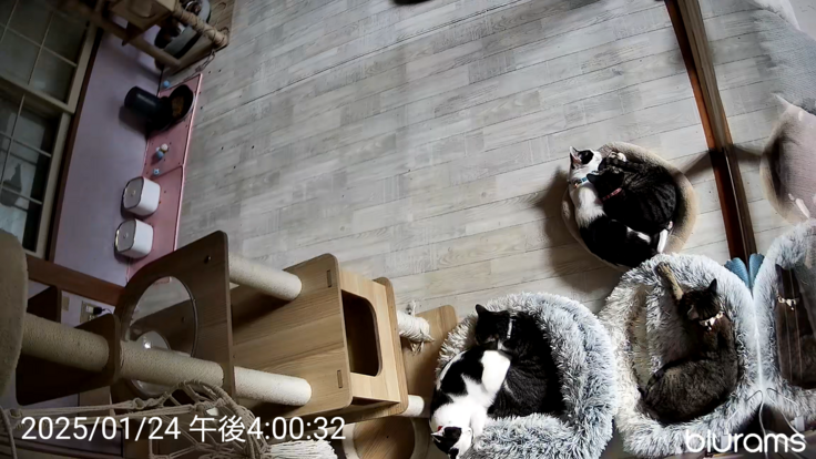 見守りカメラで🐱たちの様子を…スタンバイしている…急いでご飯とお薬を…
