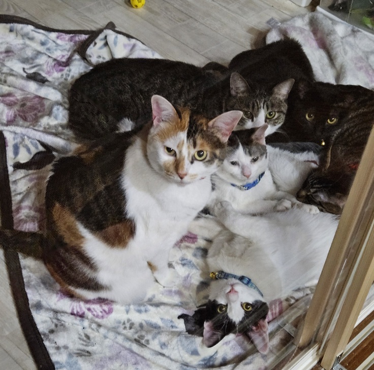 ゴマちゃんの重症化に合わせたかのように猫団子になりみんなでまわりわ囲んで居ます。