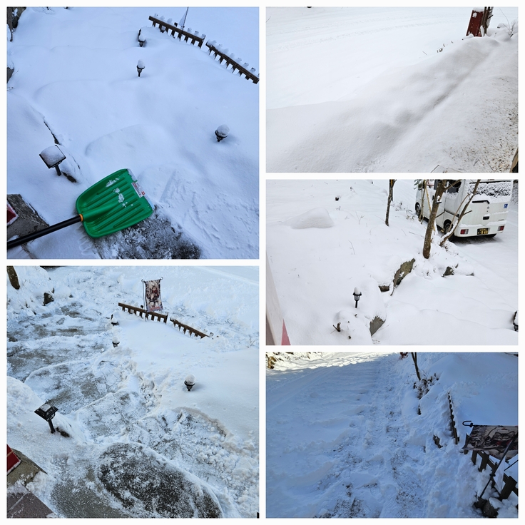 身体を支えながらの雪かきは、1番きつい作業です❗気づくと、まけーるな…と…