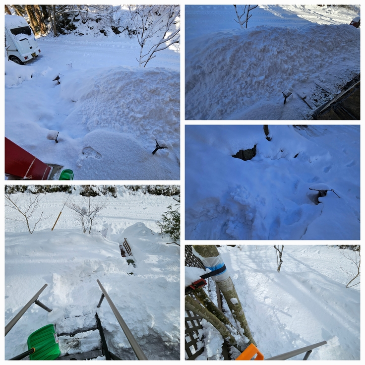駐車場まで…ウッドデッキに積もった雪も全て終わるまで3時間位かかり…