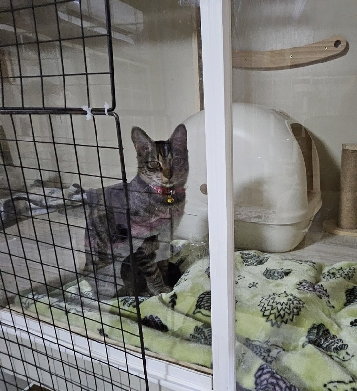 今日は少し早めのam3:30🐱たちにおはよう🙋♀️❗今日はおはぎちゃん避妊手術再チャレンジの日、先週レントゲンの結果消化不良の為断念…他の🐱より消化に時間がかかる事が分かり前日から個室に移りました。