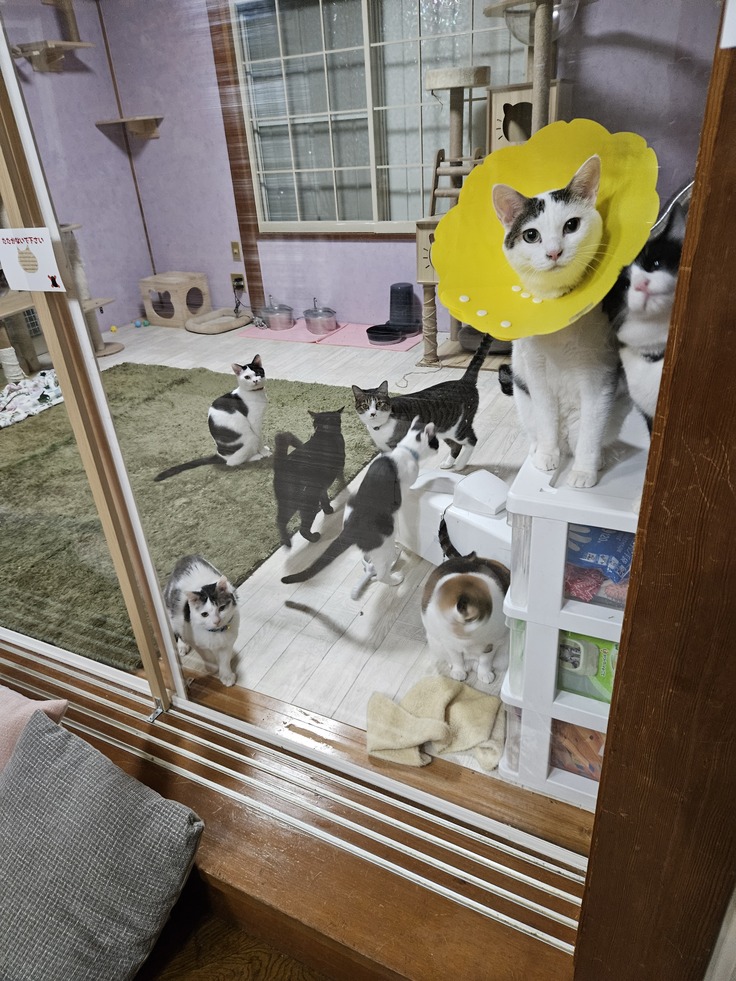 18:30頃に部屋から🐱のたちのところへ行こうとした時つまずき左半身を強打。頭を守ろうとして首がむち打ちの様に…結局頭も打ってしまいました。左手の親指はみるみる腫れ激痛…足の指先は痺れている、膝にはアザ、痛めていた左肘も強打してしまい動かせない…息子が異変に気付き部屋に…入り口側で動けず倒れたままうなっていたのでビックリされました。🐱部屋ヘは息子が行ってくれました。