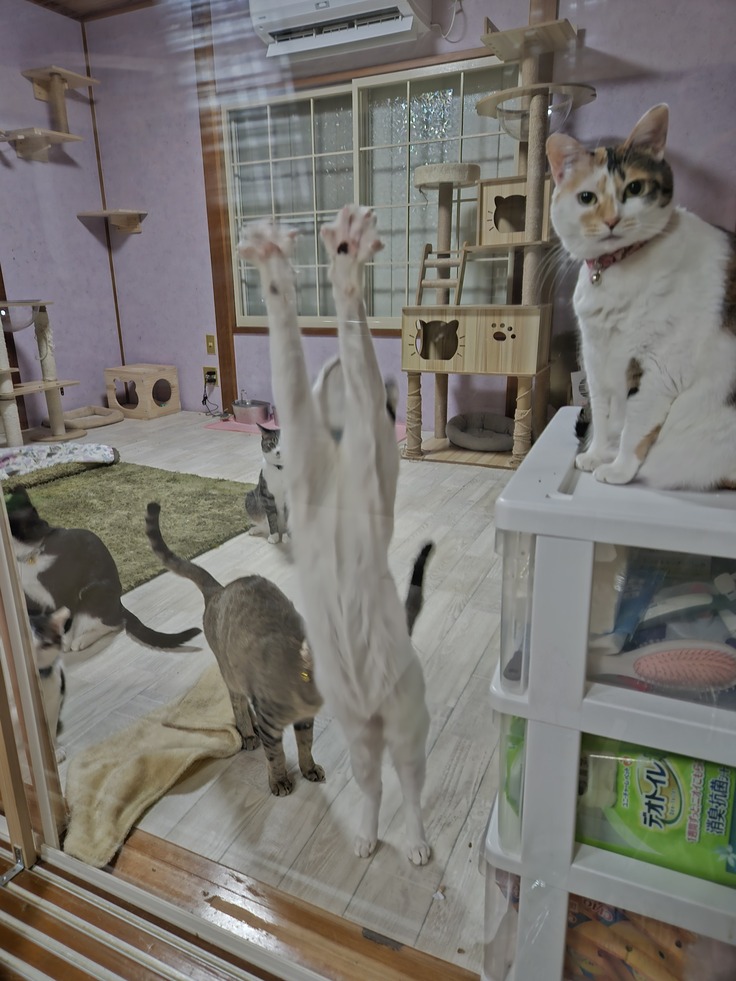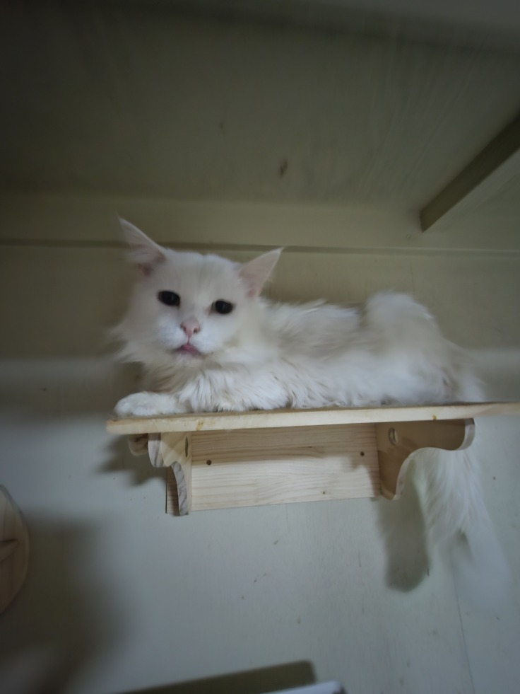 朝のご飯はみんなの大好きなウェットパウチ…50g入りのパウチ26袋が、いうまに完食…。満足げにお顔をペロペロ…。トイレ掃除、シルクくんは既にステップに上がり朝のナデナデのおねだり中…