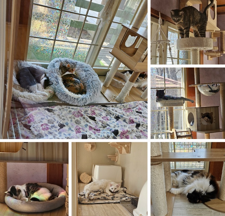 今日はノーゲスト…。猫たちの様子を…お日さまがキラキラ、ポカポカみんなのびのびお昼寝中…