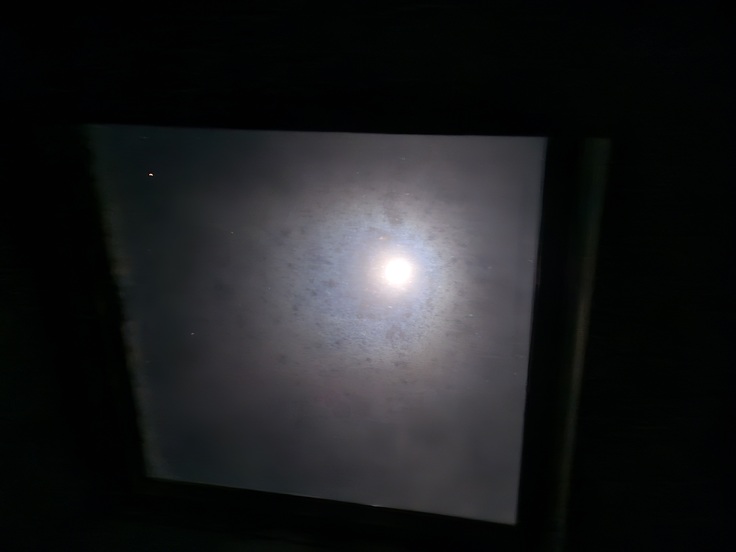 3月7日夜のお掃除、お世話が終わり部屋行くと天窓に月が…