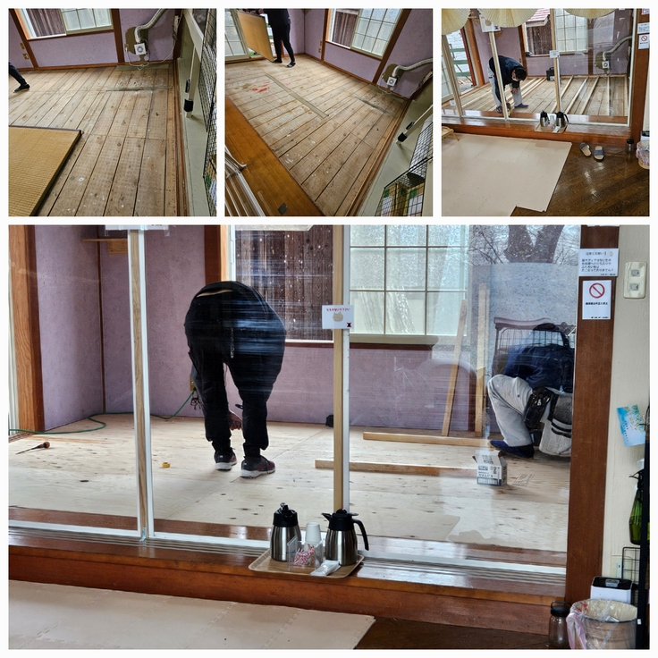今日の作業で新しい仕上げの床張りまで終わりました。