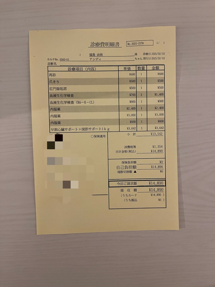 今回の領収書を掲載させていただきます。