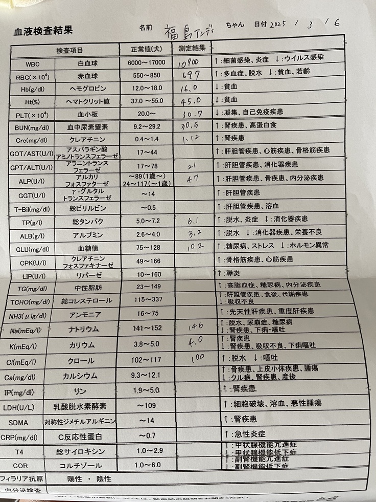 そして血液検査ですが、前回は電解質の数値が