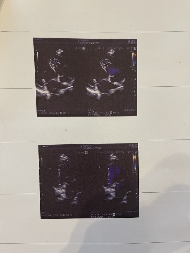 三尖弁はわずかに逆流はありますが、経過観察です。