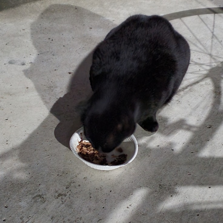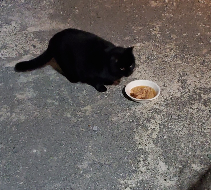 その子が好きなご飯をたくさん出して9割程食べ終わったところで他の子を追い払ってしまう癖のある猫ちゃん(クロ)が来てしまい全部食べられずに帰ってしまいました😢