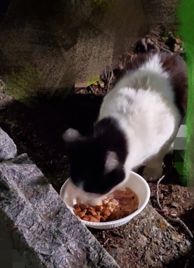この子は私が行く前の時間に別の餌やりさんから貰っている子で結構おなかいっぱい食べてるからなのか私のときに来ることはあまり多くなく