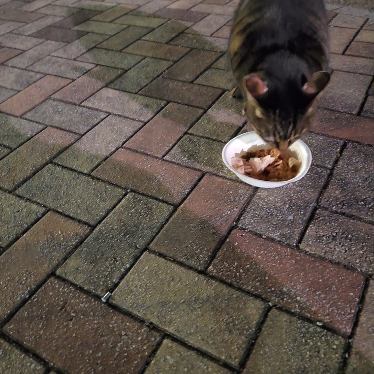 暗い場所で食べているので写真は撮れておりませんがカリカリ+パウチ3.4個しっかり食べてくれており、元気もありで一旦はまた様子を見ていこうと思います。
