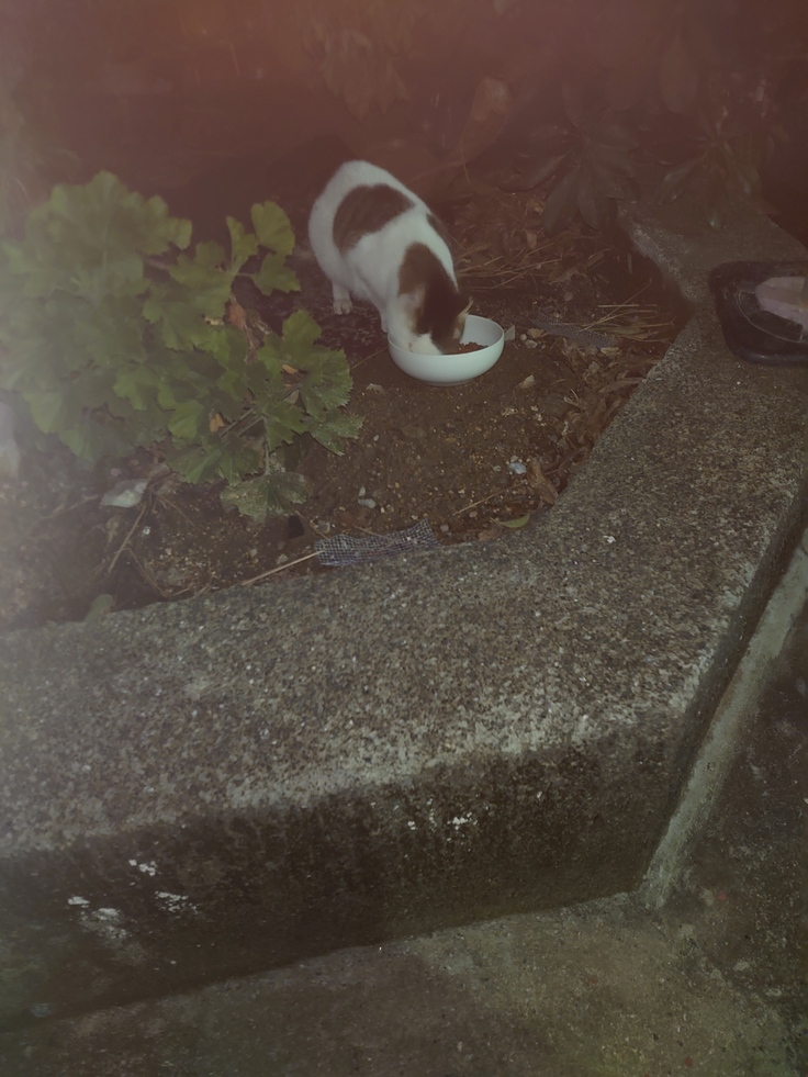 公園近くの空き店舗に現れるニャンコのご飯やりです。