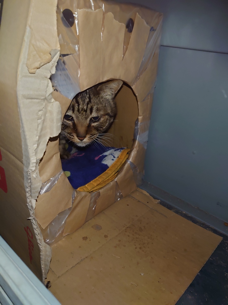 私が管理してるキジ猫ミー君がいる町会は 比較的、町会長や住人の方が理解があり、目立たない場所ですが、猫の段ボールハウスを