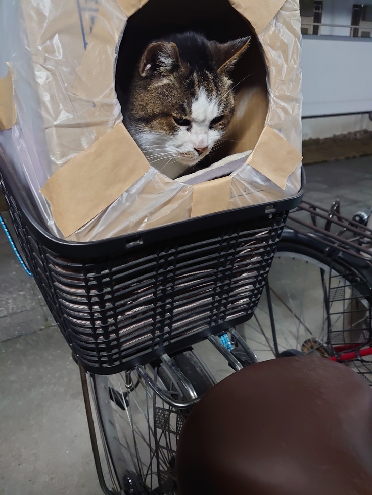 餌やり行く時は段ボールハウスに入らず、