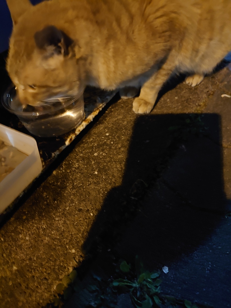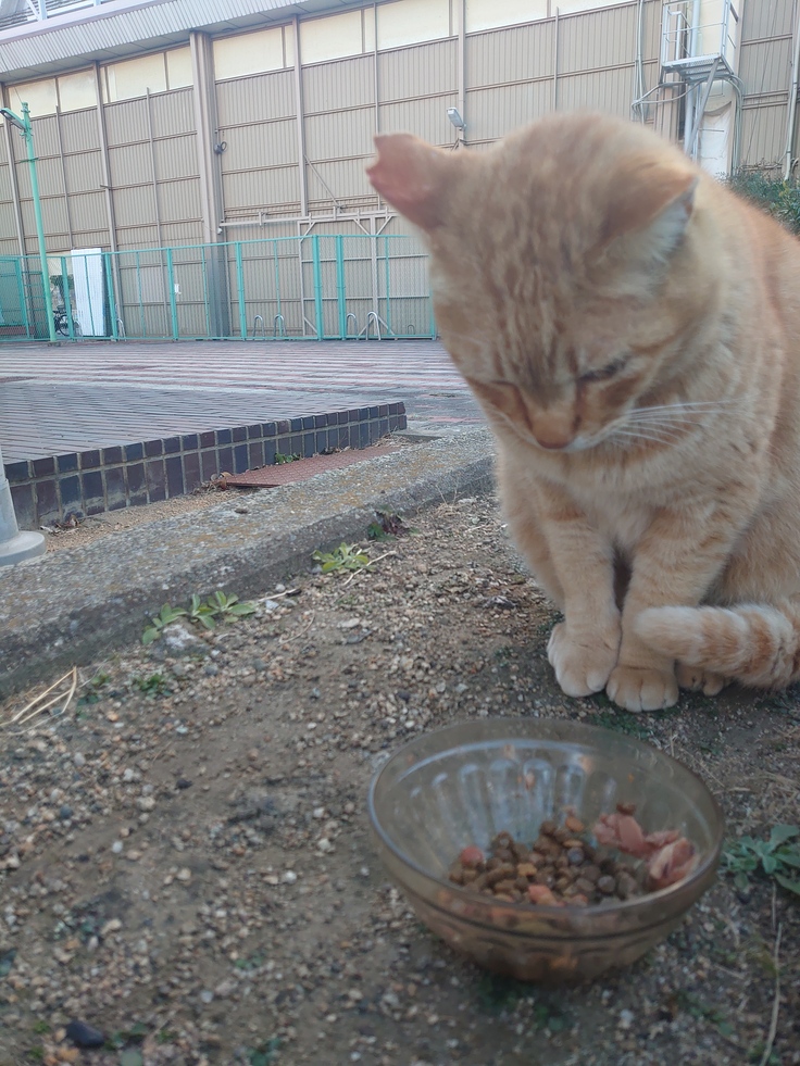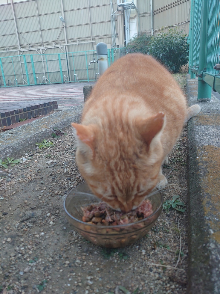 夜の餌やりで茶トラのキクちゃんが撮れたのでなかなか動く仔で上手く撮れないです。キクちゃんは家猫だったのですが、脱走し、飼い主が捕まえれずそのまま外での生活に