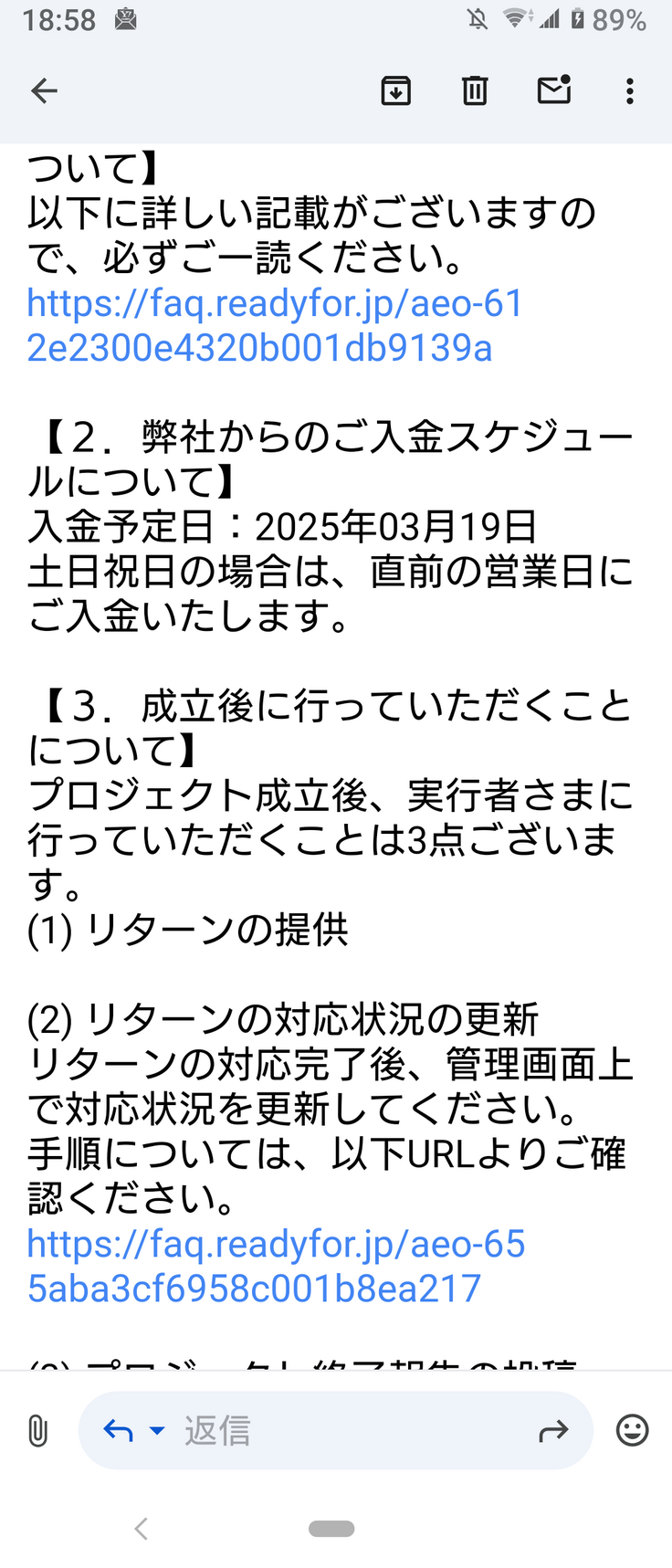 入金の予定日が3月19日になっています。