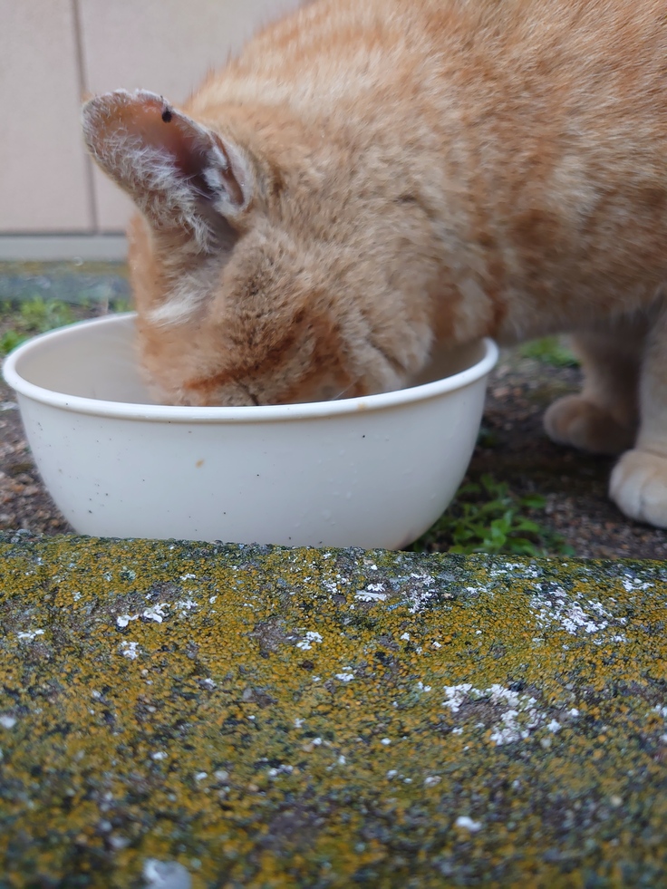 私が餌やりをしているのを住人は知ってるのに。人間の食べ物を与えないで