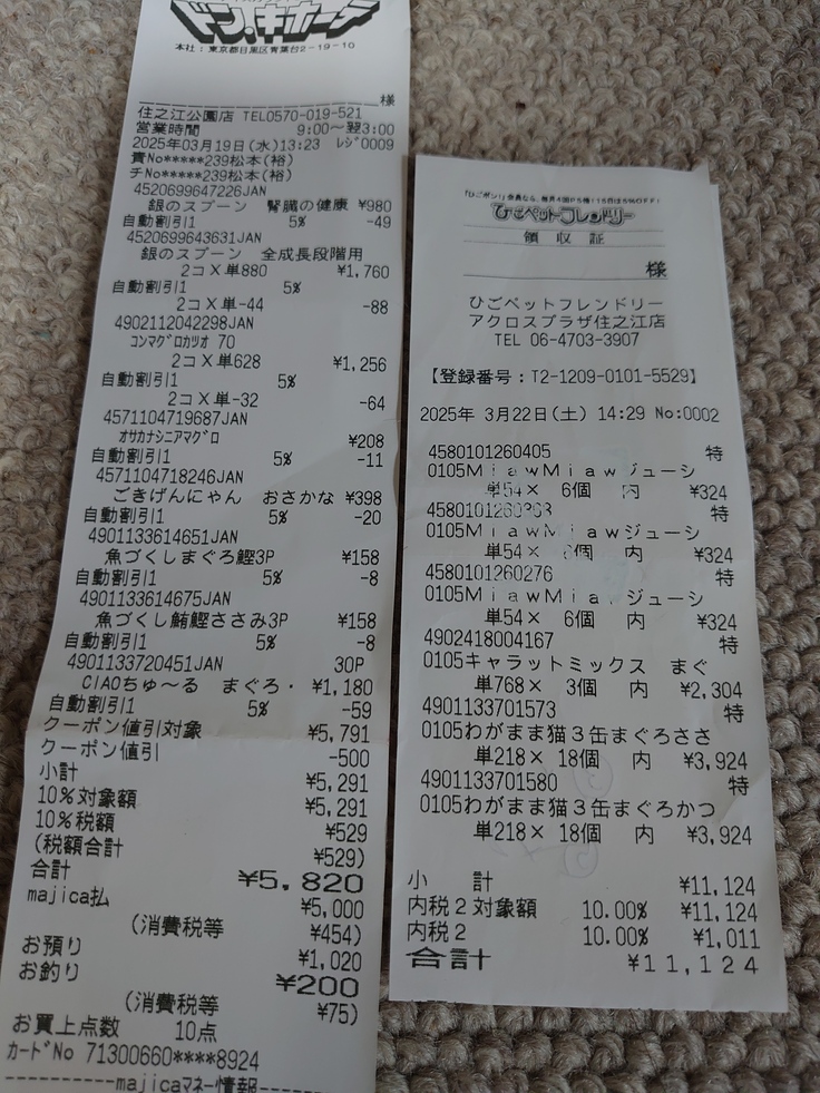 3月のレシートが2枚出てきましたので