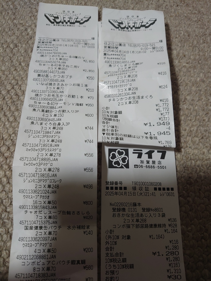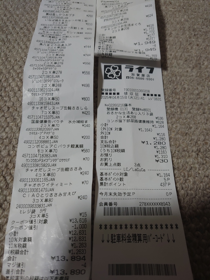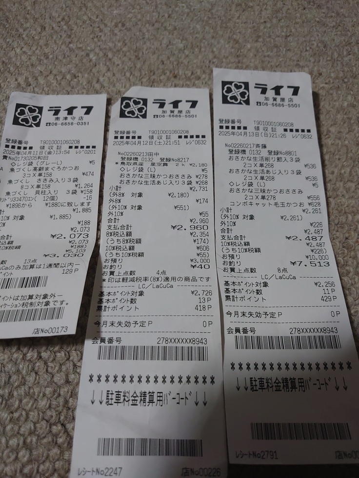 縦長レシートで店名が見づらいので同じレシートです。2枚目と3枚目です。