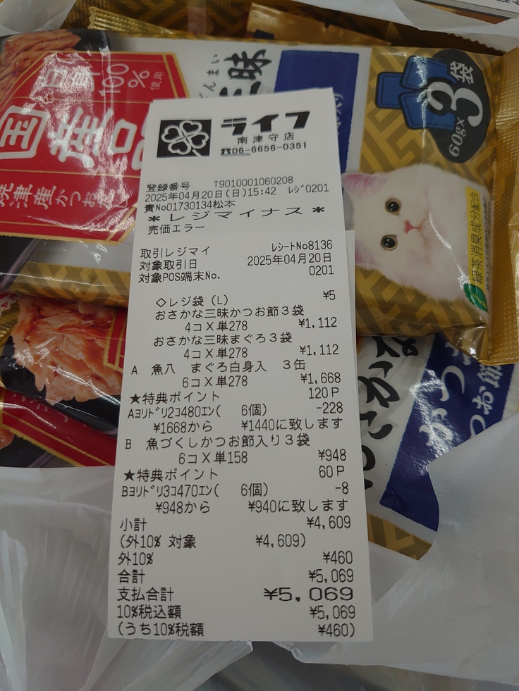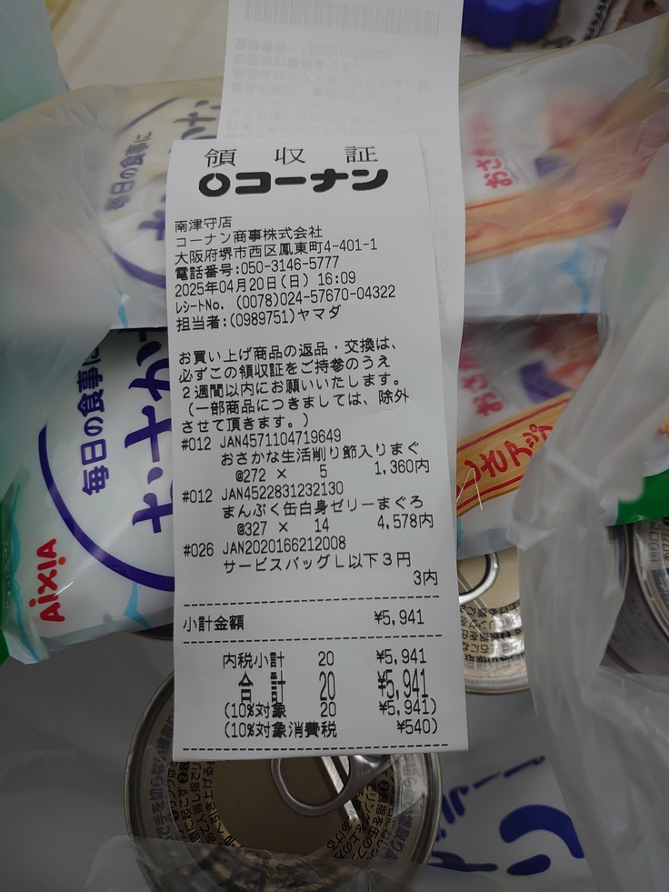 続きです。総合計はまとめて最後に出します。昨日買った物は品物と