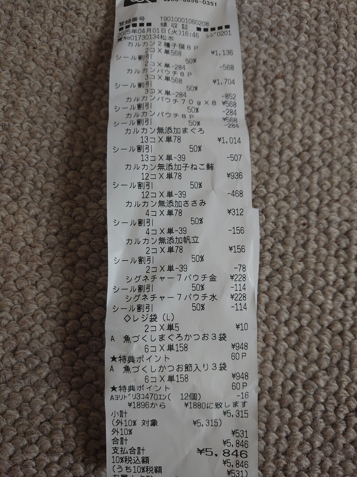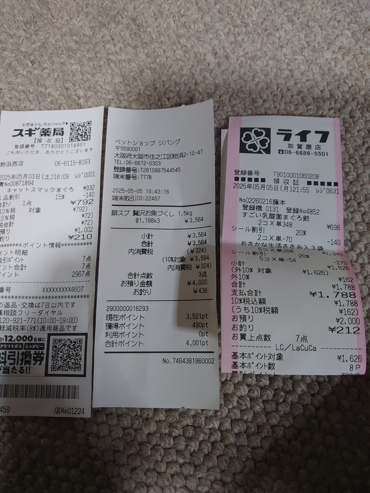 部屋が狭くて一度には置き場もない為日々の購入になりますが、