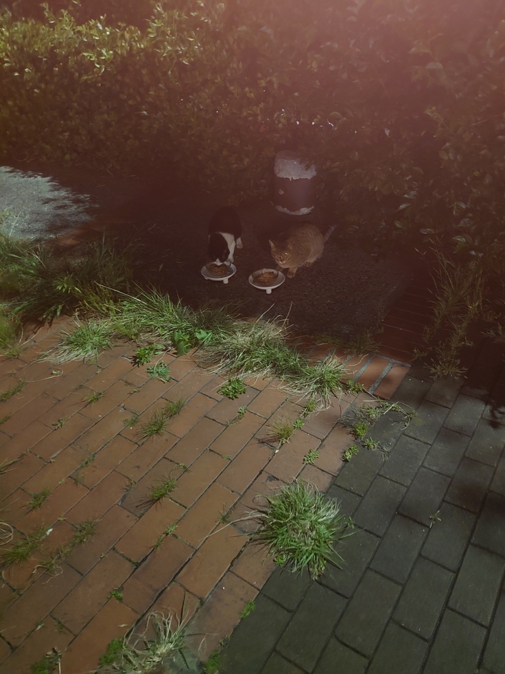 個人の活動で毎日深夜までの餌やりと早朝の餌やり。