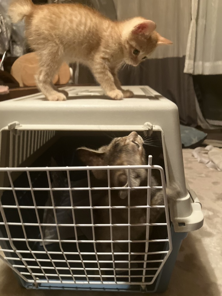 3食昼寝付きで2匹ともすくすくと元気に大きくなってます。テントから脱走、走り回り2匹ともやんちゃです。