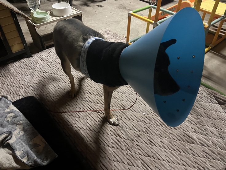 本人もキズが治らないとカラーが外してもらえずしょんぼり。