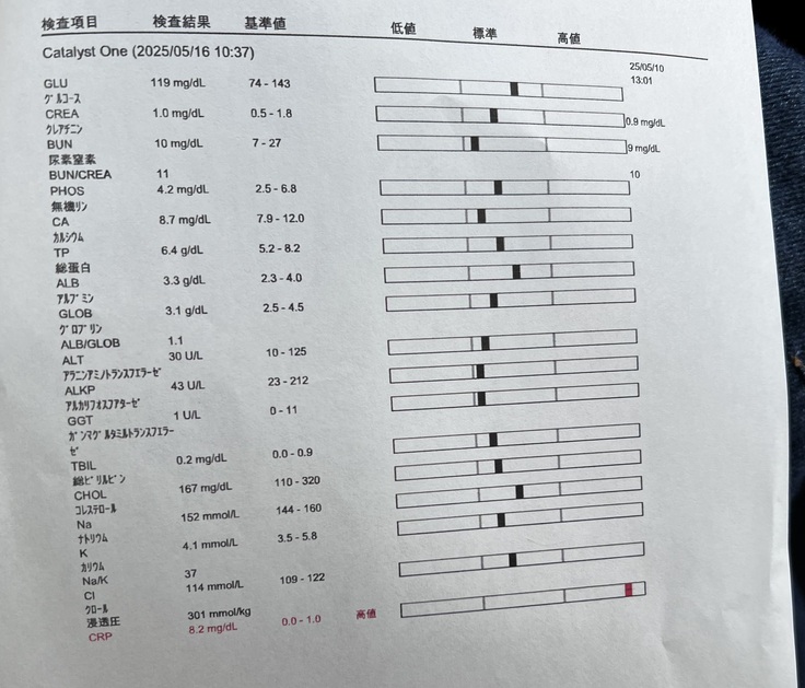 炎症の値がとても高いことがわかり