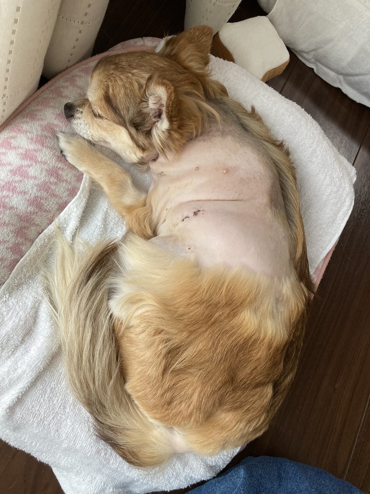 手術前より体調は良さそうです。手術前は本当に毎日苦しかったんだなぁ😣と思うと、凄く心配だったけど手術してもらえて本当に良かったと思います。夜間の発作も今のところ出ていないし、車移動中の呼吸の荒さも落ち着いています。